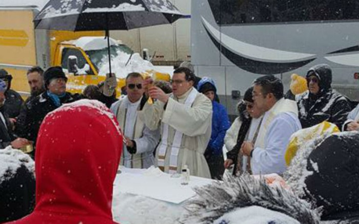 A múlt heti hóvihar az Egyesült Államokban váratlanul egy szentmisét is „odafújt” az egyik főúton rekedt több száz embernek. Az autópályán mondott miséről („Turnpike Mass”) számos amerikai portál és a közösségi média is hírt adott.